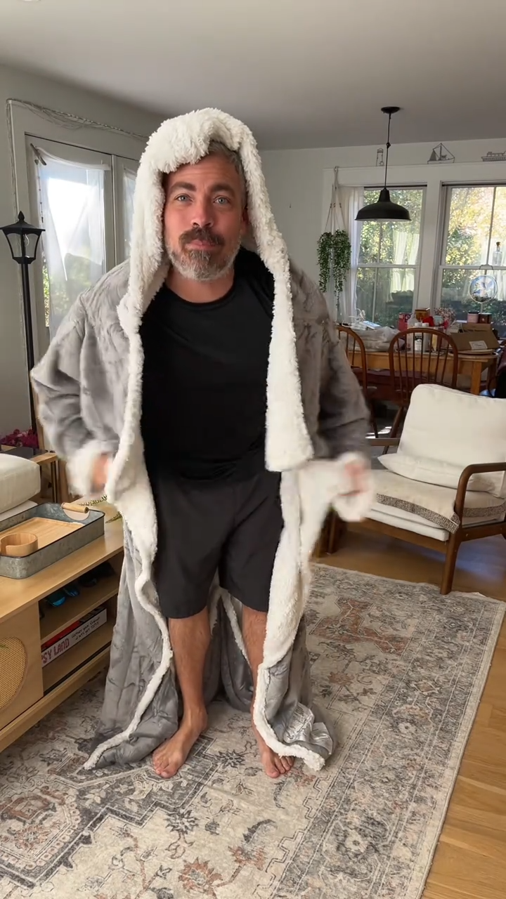 Providing you with therapeutic warmth and comfort with sleeves and a hood so you can stay toasty while relaxing, working, or moving around the house!